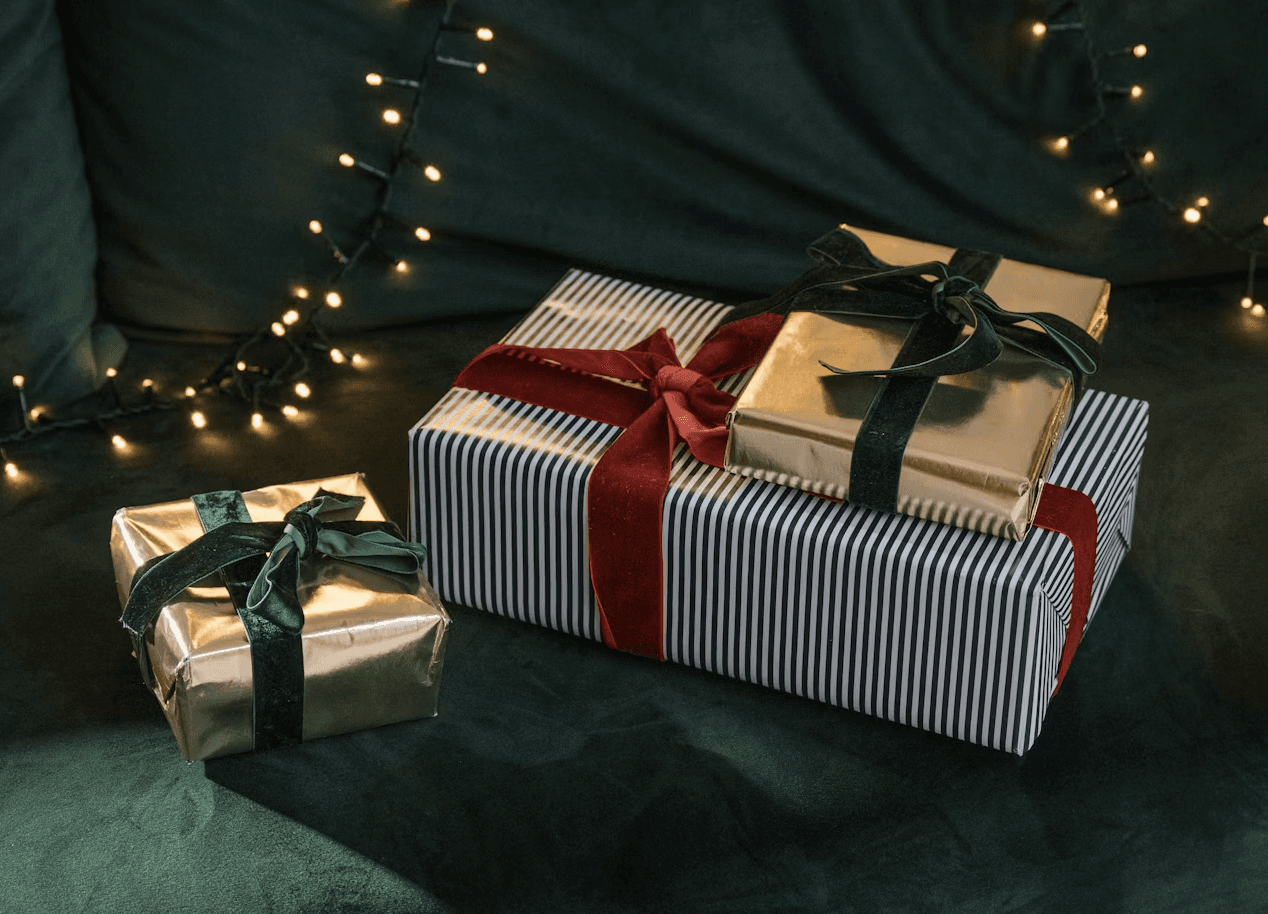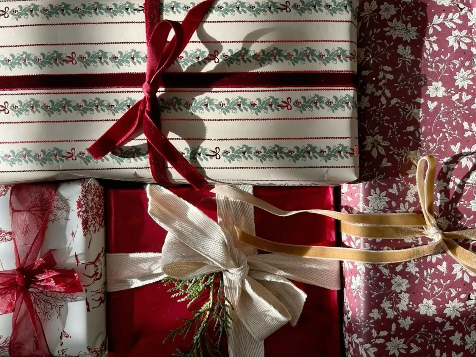 All red gifts: creates visual cohesion and a creative shopping challenge
