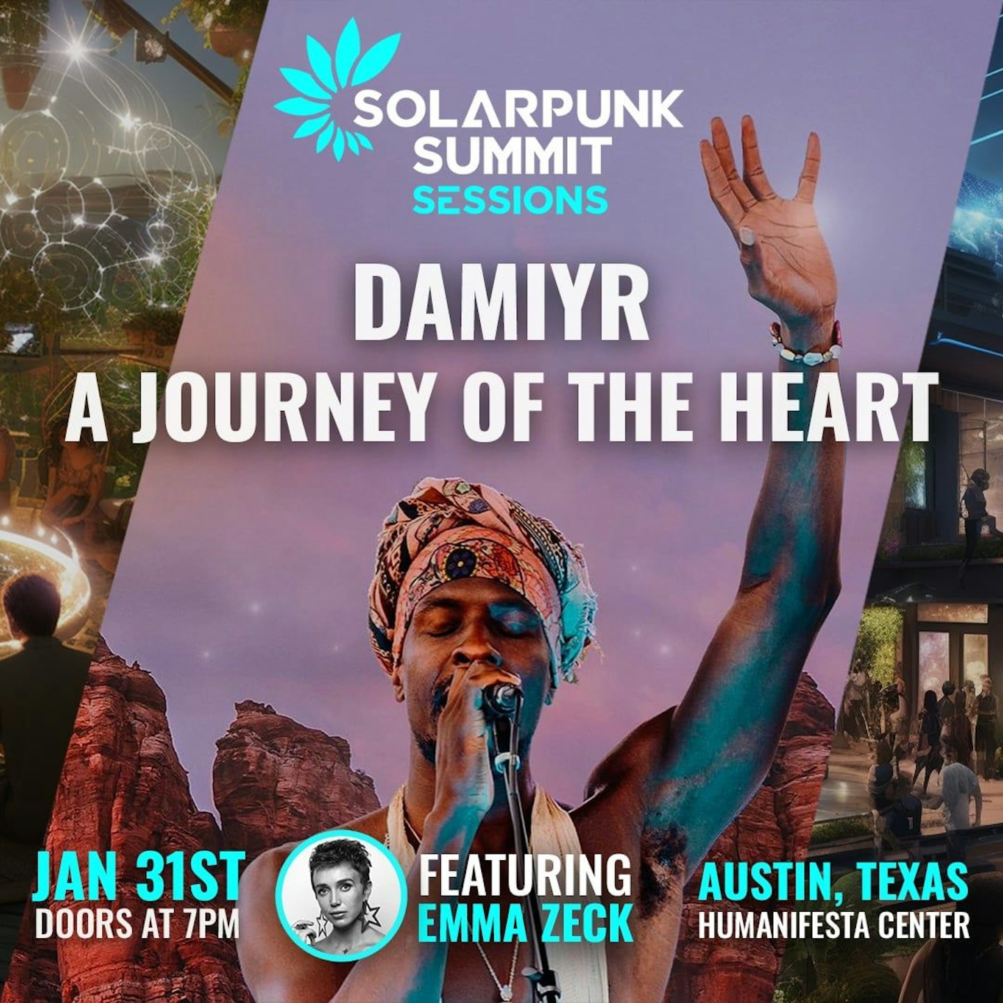Join us for an unforgettable evening of heart-centered connection and soulful music at the Solarpunk Summit Sessions: "A Journey of the Heart with Damiyr.