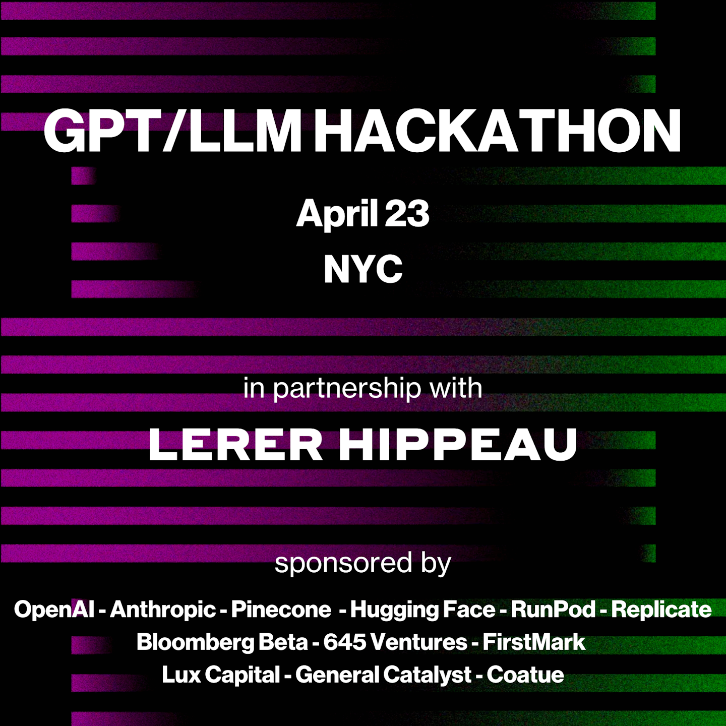 * Sponsored by OpenAI, Lerer Hippeau, Anthropic, Hugging Face, Pinecone, Replicate, RunPod, 645 Ventures, Bloomberg Beta, Coatue, FirstMark, General Catalyst, and Lux Capital
