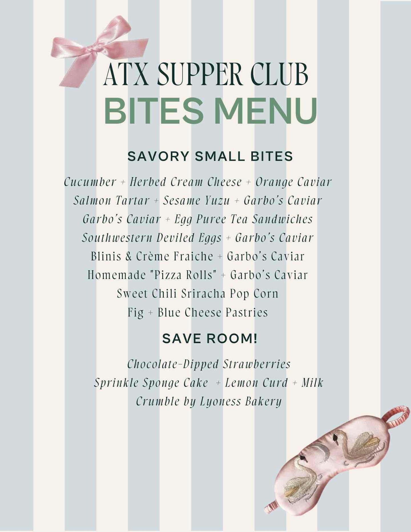 This event will feature 10 small bites comprised of nostalgic slumber party bites elevated to the next level by Master Chef's Kennedy Grace AND Garbo's Caviar! We can't forget out hosts and bevvie saviors LOVEBIRDS. That's just the FOOD ➡️ Enjoy tattoos, palm readings, caviar bumps, champagne, and more! We're not even done 🥹 we have ALSO partnered with the BEST in food and bev to bring you a HUGE giveaway (dropping soon 👀)!
