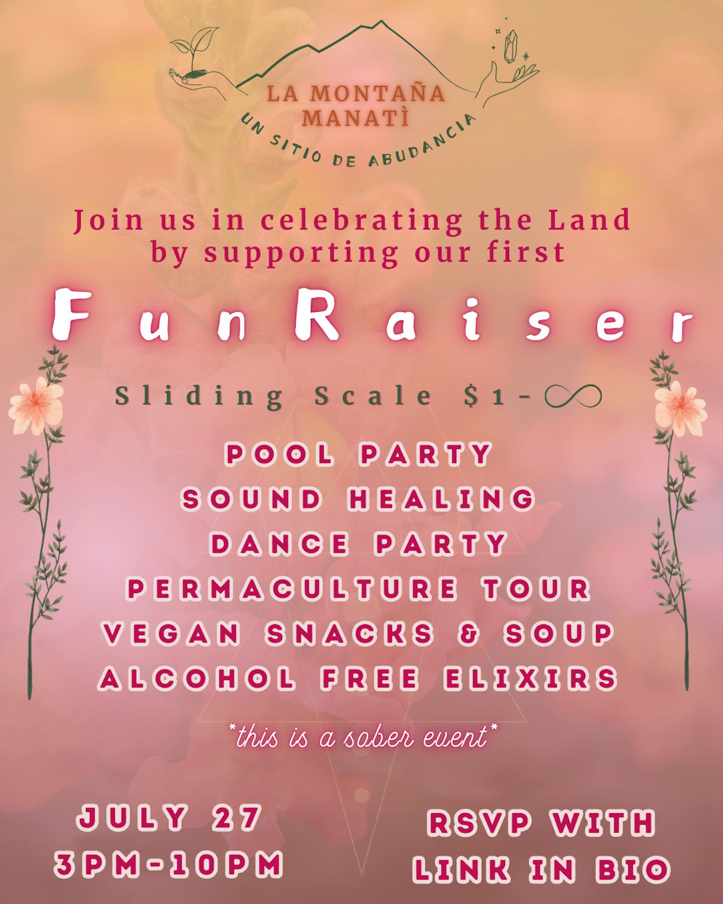 La Montaña Manatí invites you to join us in celebrating the land by supporting our first “FunRaiser” to continue evolving this community healing space.
