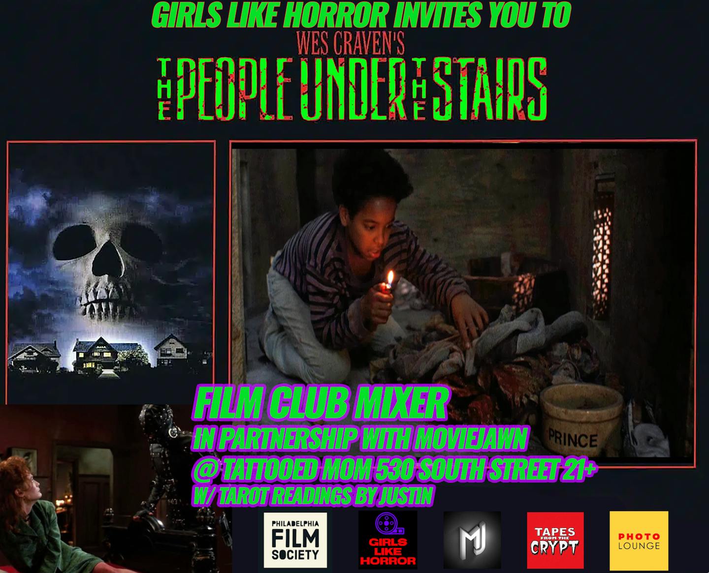 Girls Like Horror in partnership with MovieJawn bring you a night of goodies, mixing, and tarot readings! We kick things off at Tattooed Mom @6:30PM for our film club mixer with Tapes From The Crypt epic raffle which include a tape, shirt, AND ticket to the Found Footage Festival. Goodies from MovieJawn AND 3 tarot/3lenormand 15 minute readings by Justin ( @technotarot ). We are also stoked to be film sponsored by Photo Lounge for this event so we can ALL snap tons of fun 35mm film photos with disposable cameras from Photo Lounge. Then at 8:30 we will head to The Bourse to see The People Under The stairs @ 9 - Film screening location: The Bourse - 400 Ranstead St. GET YOUR TICKETS and use exclusive code GLH1991 for $10 tickets! This screening is part of a weekend long Cult Horror Double Feature Event. If you dare join us Friday the 17th for a screening of Chopping Mall in partnership with Riot Nerd and The Philadelphia Film Society. This event is part of a giveaway to win tickets to Chopping Mall and Riot Nerd's 1/24 80's New Wave Dance Party. Check our instagram for more info on how to enter! We will also be heading to Tattooed Mom after Chopping Mall on the 17th.