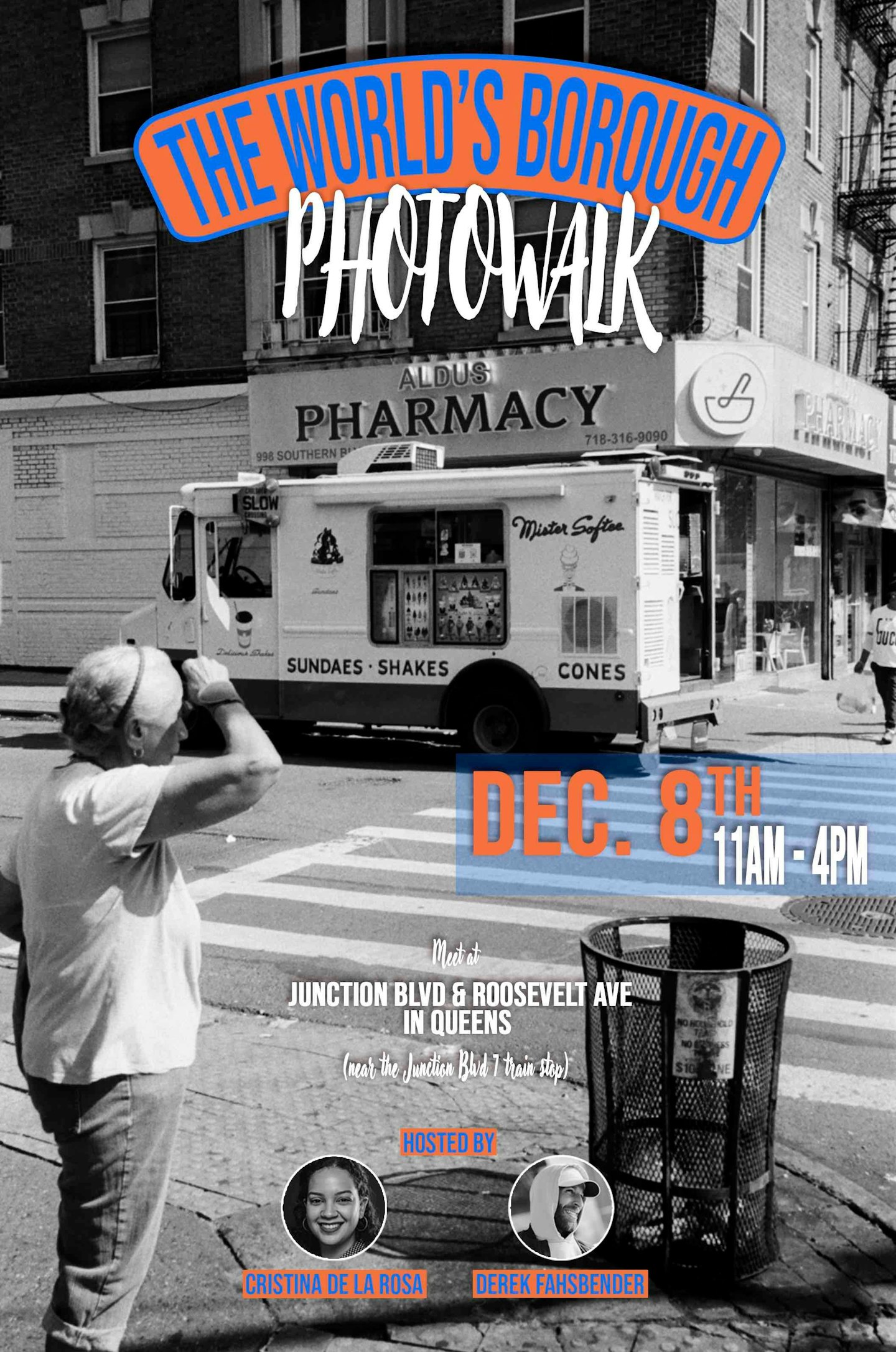 Join street photographers Cristina De La Rosa and Derek Fahsbender, as they guide us through the culturally rich neighborhoods of Corona and Flushing in Queens. This is a great opportunity for photographers of all levels to come together, network, and explore the hustle and bustle of these diverse neighborhoods. Be prepared to walk through vibrant streets full of street vendors, local shops & restaurants, and iconic backdrops. We will begin near Junction Blvd where we will walk through Roosevelt Ave, 103rd street, and then take the train a few stops to Main St, Flushing where we will end at a food market.