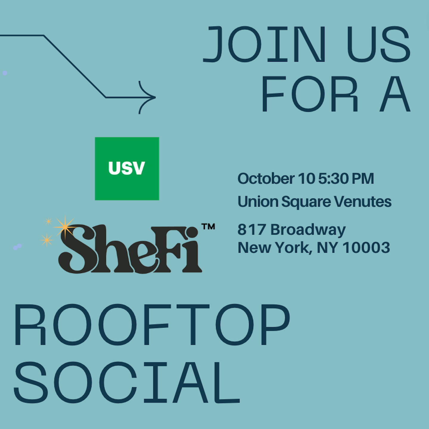 Join us for a rooftop social hosted by Union Square Ventures and SheFi on October 10th at 5:30PM!