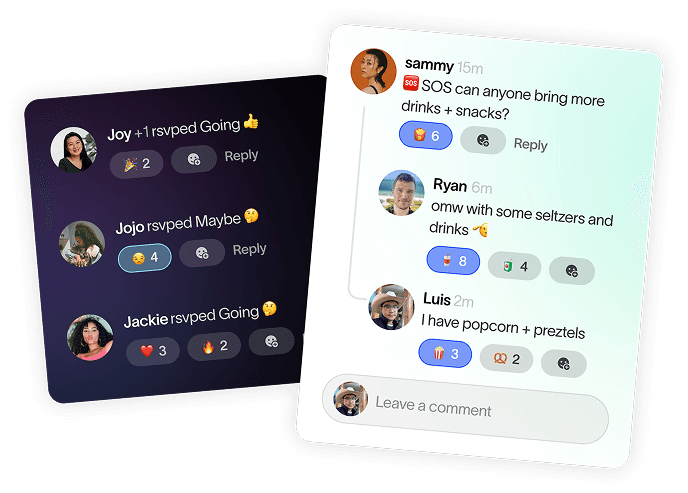 Stalk the guest list, leave comments, reply to friends, and add reactions.